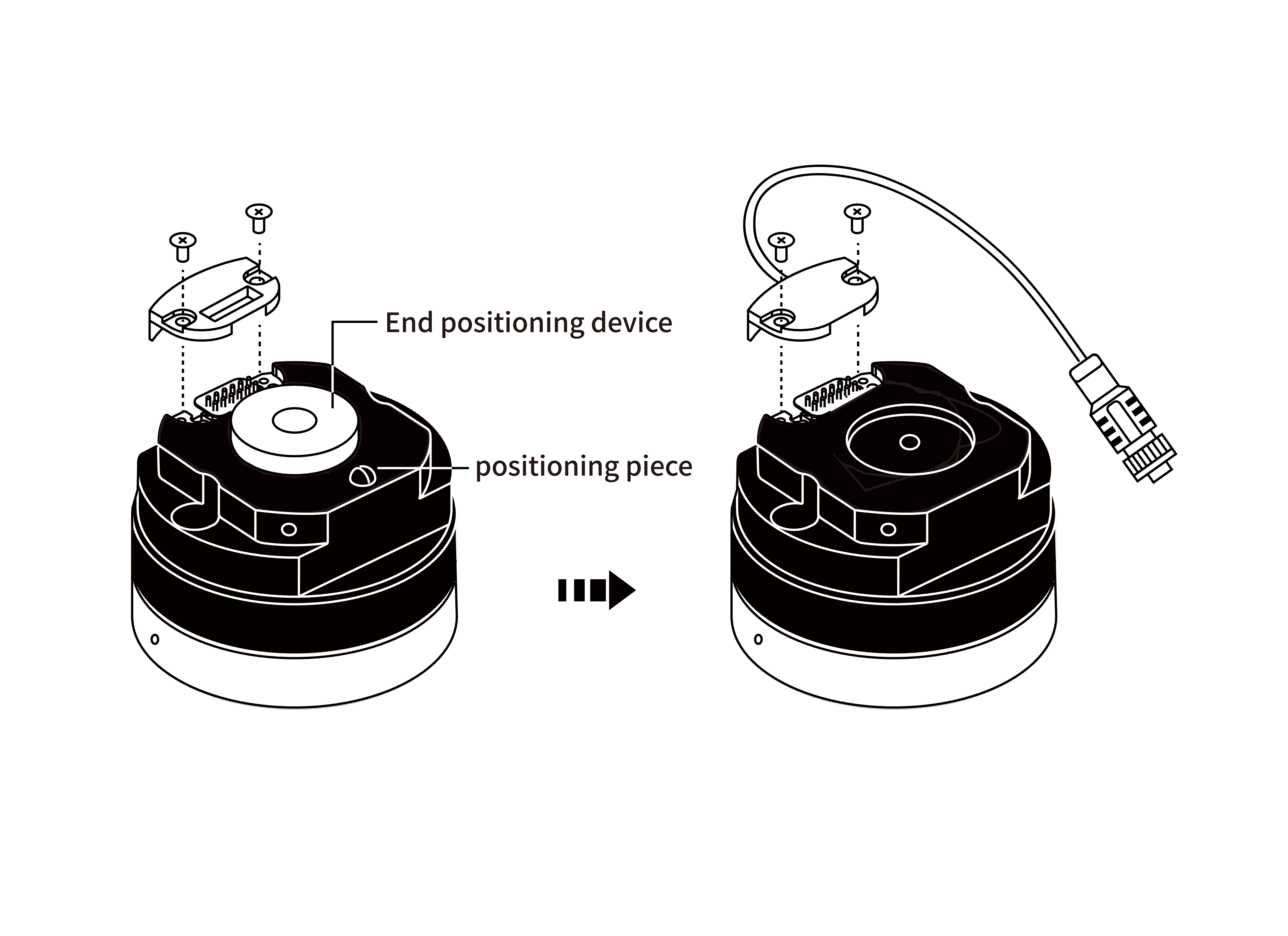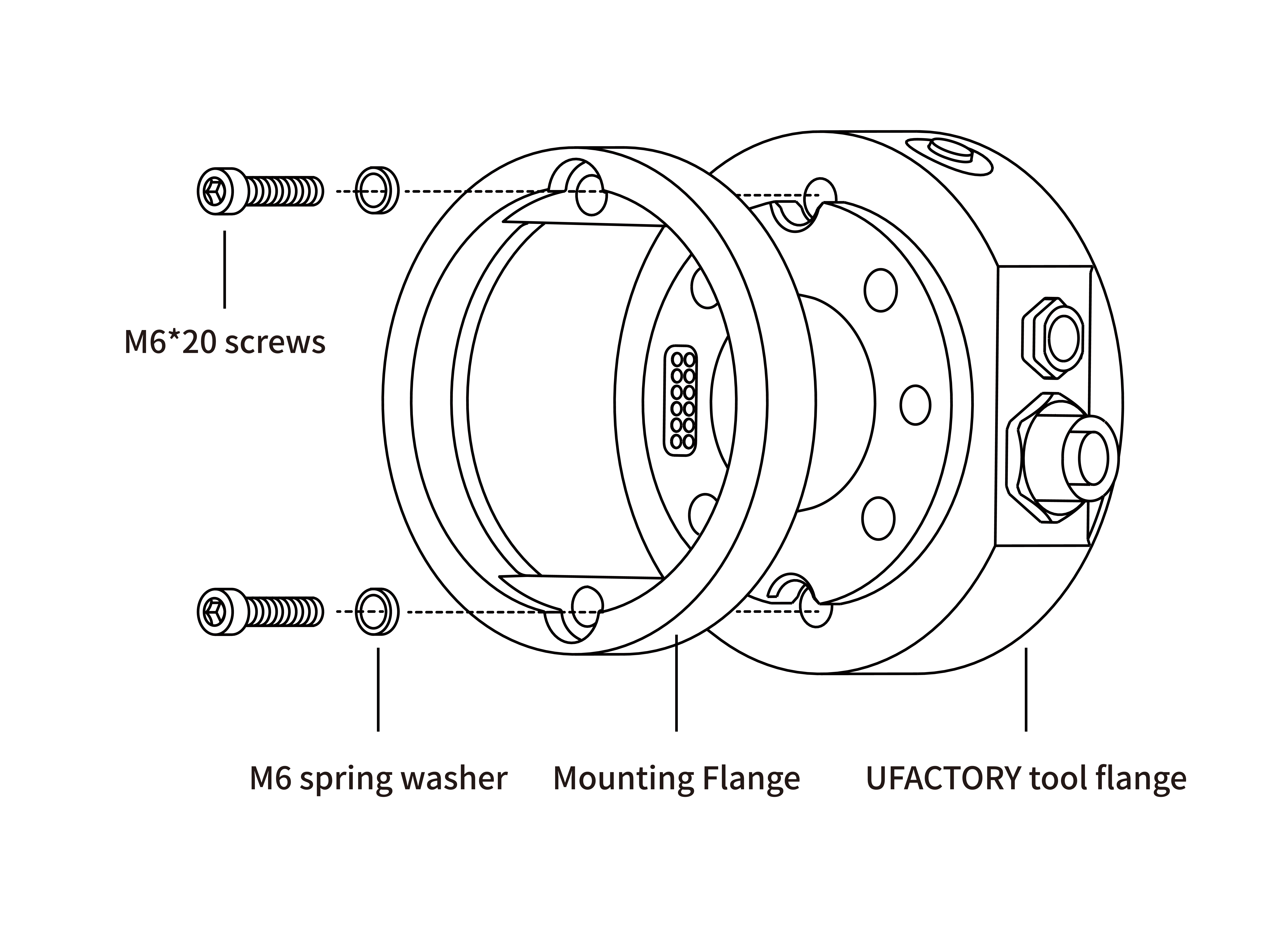 - Install the Mounting Flange on the end flange using 4 M6*20 screws(spring washer must be used together).
