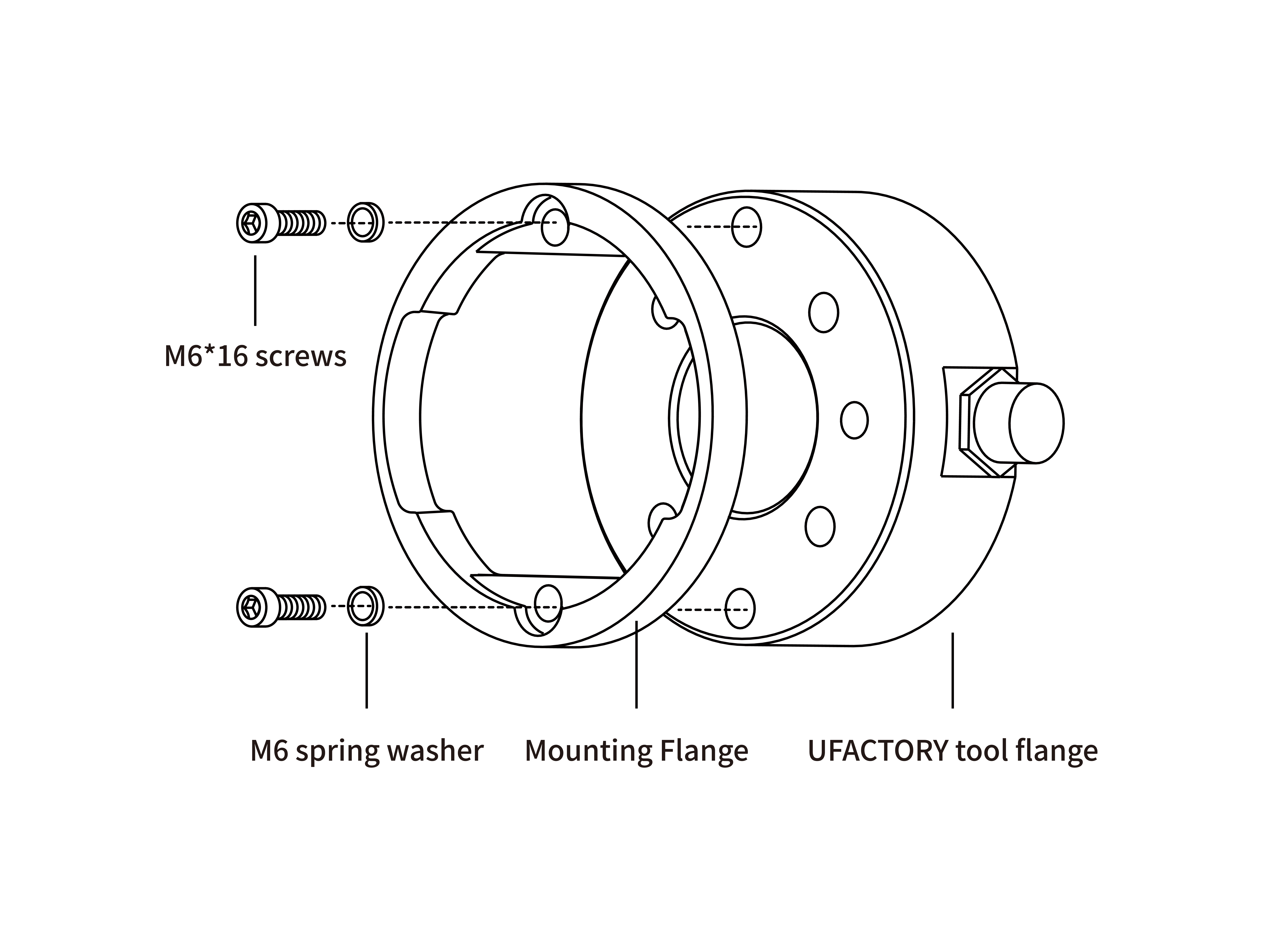 - Install the Mounting Flange on the end flange using 4 M6*16 screws(spring washer must be used together).