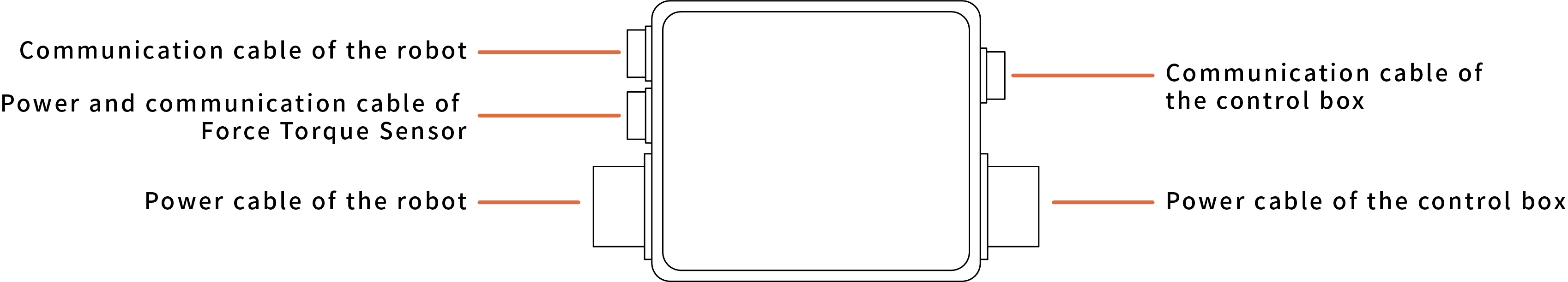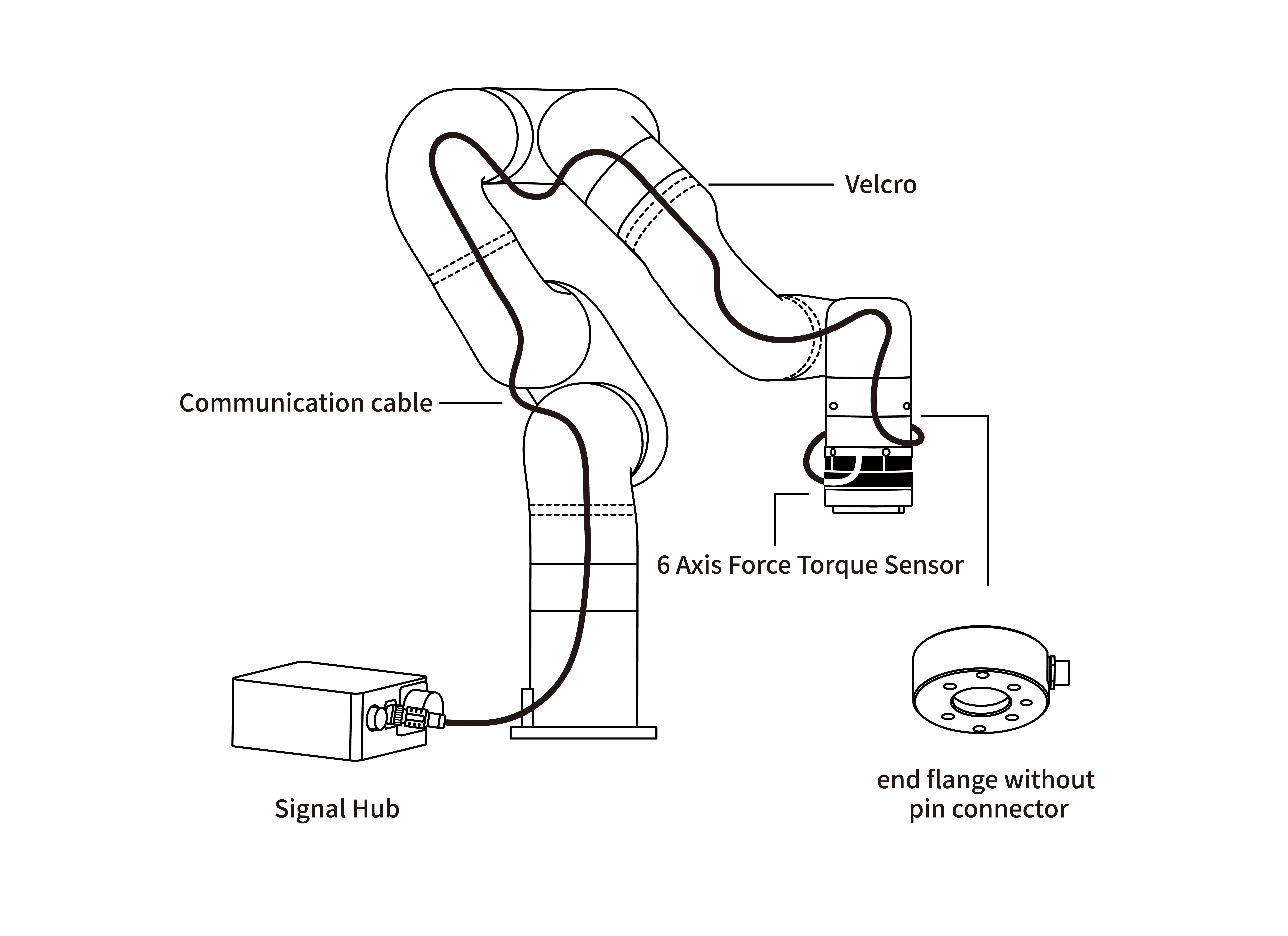 - Connect the 6 Axis Force Torque Sensor communication cable to the signal hub.